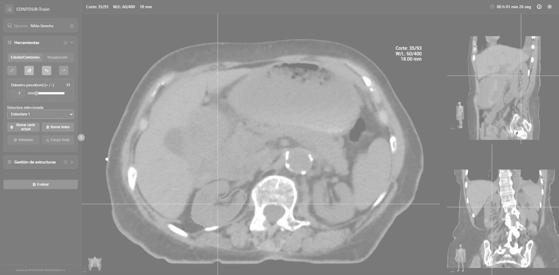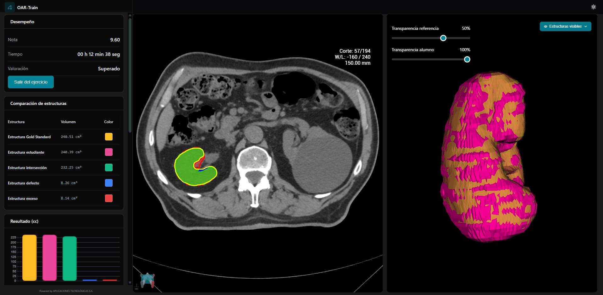 - Retroalimentación automática: compara los volúmenes delimitados con las referencias de los expertos.