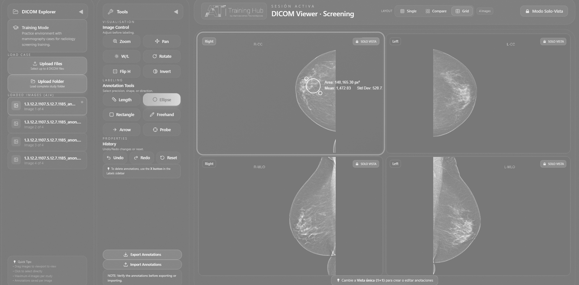 Entrenamiento especializado en la detección y evaluación de hallazgos en mamografía